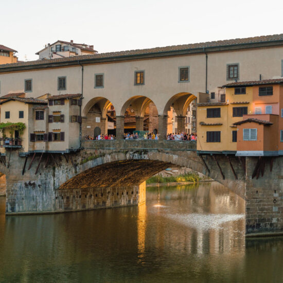 The enchanting Ponte Vecchio, with its jewelry shops and art workshops, offers a picturesque spectacle over the Arno River. It stands as one of the city's most fascinating architectural icons.